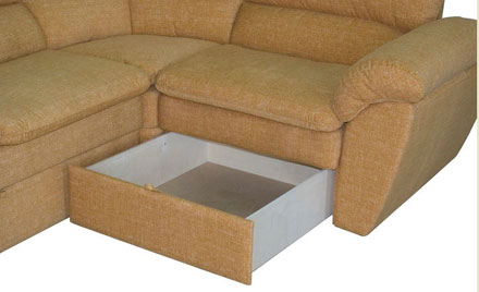 — Богатый внешний вид. — Возможно использовать как центральный объект интерьера. — При трансформации диван находится вплотную к стене, раскладка производится в переднем направлении. — Матрас на эластичном ППУ. — Диван не универсальный, изготавливается как «левый», так и «правый». — Бельевой ящик в угловом диване.