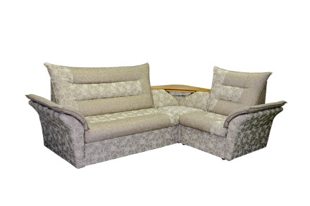 * Наличие кофейного столика с выдвигающейся полочкой на угловом элементе дивана. * Возможно использовать как центральный объект интерьера при условии дополнительного заказа задников из обивочной ткани. * При трансформации диван находится вплотную к стене, раскладка производится в переднем направлении. * Ровное спальное место. * Матрас из высокоэластичного ППУ. * Разность высоты сиденья кресел и дивана в перделах 3 см допускается. Стоимость зависит от категории выбранной ткани.