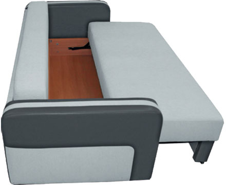 Условные обозначения • При трансформации диван находится вплотную к стене, раскладка производится в переднем направлении. • Возможность использования как центральный объект интерьера. • Посадочное место: березовые латы, пружинный блок, геовойлок, листовой ППУ. • Приспинные подушки: формовой ППУ, чехлы подушек съемные. • Декоративные подушки: холлофайбер. • Декоративная окантовка на сиденье и подушках дивана. • Емкость для хранения постельных принадлежностей.
