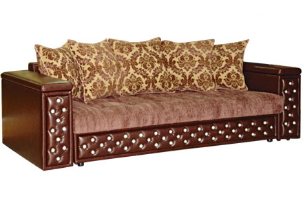 Универсальность этого дивана заключена в его формах. Прямоугольные подлокотники и квадратная стежка сиденья придают этому дивану строгий официальный вид. Фасадная часть декорирована стежкой «Капитоне» с отделкой пуговицами-стразами, создает более богатый и презентабельный образ дивана, созданного, как для деловых встреч, так и для гламурных вечеринок. Дополнительную частичку домашнего уюта вносят мягкие приспинные подушки. В подлокотники встроены вместительные ящики для хранения журналов.