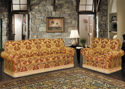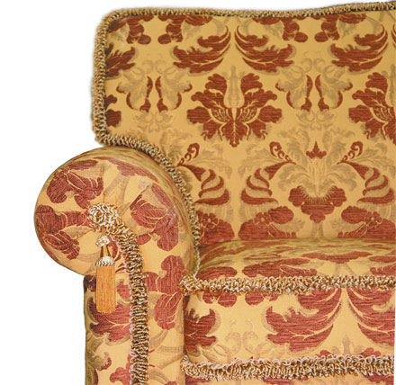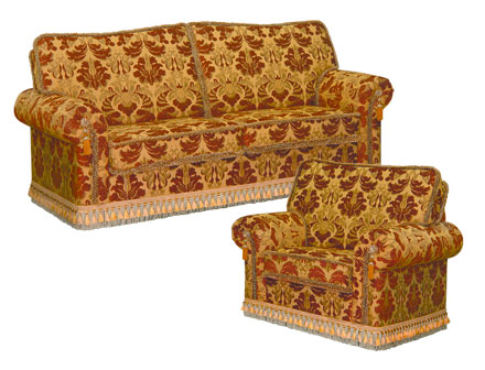 Уютный домашний диванчик, декорированный буклированной тесьмой и кистями, с оригинальной юбочкой из декоративной тесьмы. Этот диван с легкостью впишется в интерьер небольшой гостиной. А благодаря встроенному надежному механизму трансформации он превращается в полноценную двуспальную кровать, которую Вы сможете использовать каждую ночь. В комплектацию также входит кресло.