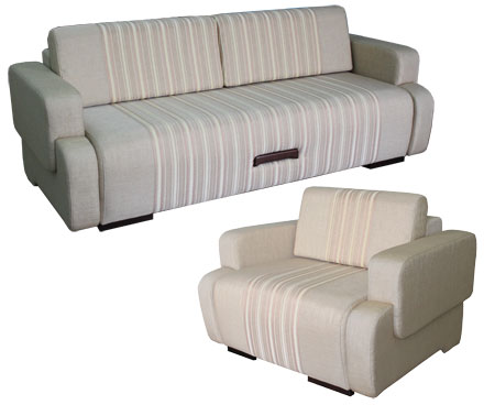 Комплект мебели «Плаза-4» будет прекрасно смотреться в комнате оформленной в современном стиле, а оригинальные формы этого комплекта будут радовать своего обладателя. Диван благодаря легкому в обращении механизму трансформации «Еврокнижка» быстро превратится в кровать. Под сиденьем дивана предусмотрена вместительная емкость для хранения постельных принадлежностей.